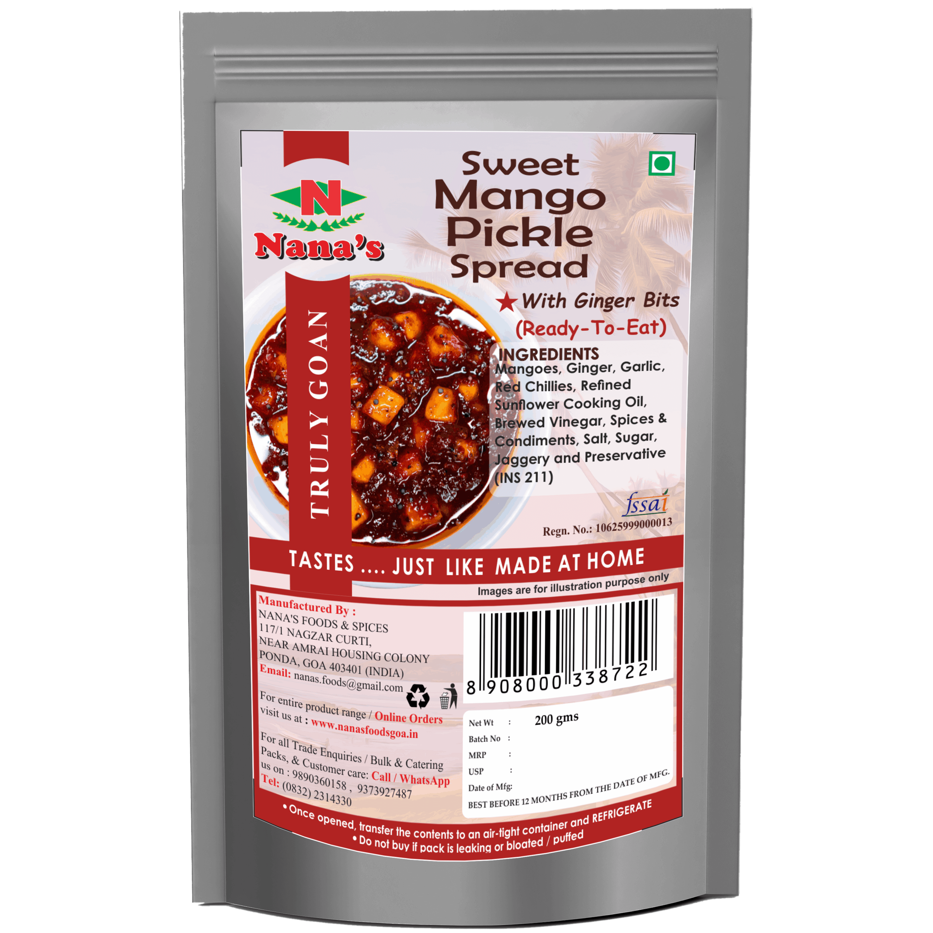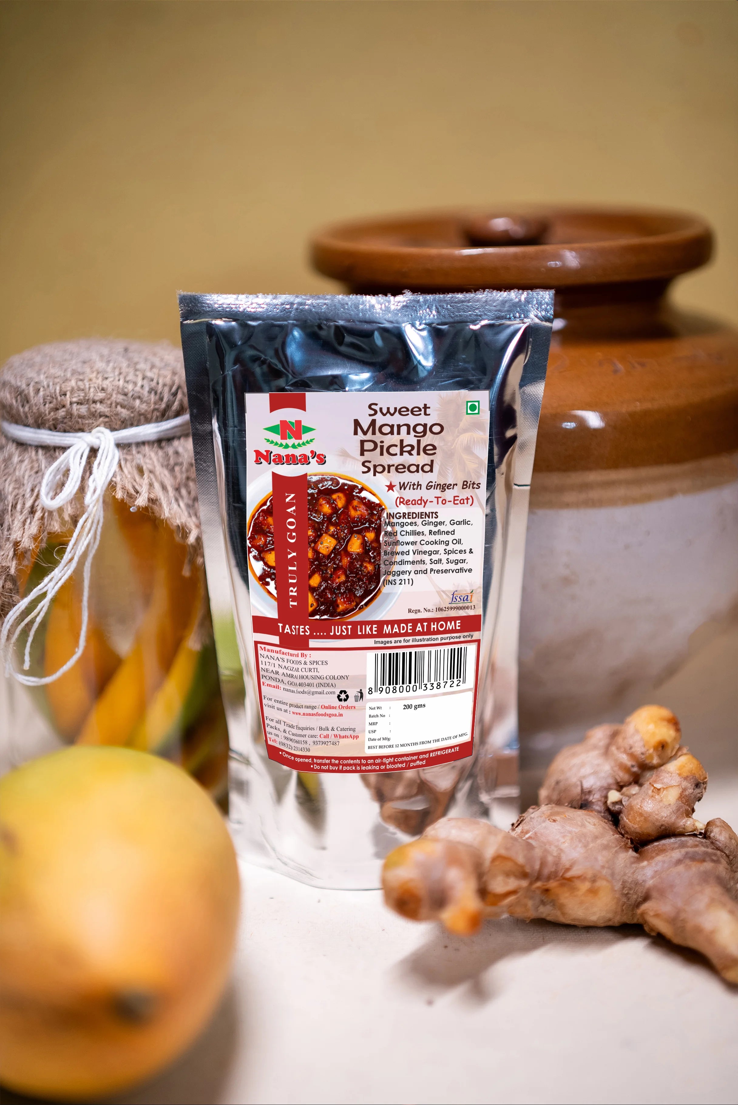 GVP-SMPG-200GSavor the irresistible flavor of our Sweet Mango Pickle, expertly crafted to perfection. Made with premium ripe mangoes, aromatic spices, and a touch of sweetness, each jar is a culinary masterpiece. Whether enhancing your favorite breakfast dishes or complementing a savory curry, our pickle promises to elevate every meal. Created with care and attention to detail, our recipe ensures consistent quality without compromising on taste or freshness. With only the finest natural ingredients, it's a guilt-free delight for any palate. Discover the essence of authentic flavor with every spoonful of our Sweet Mango Pickle.