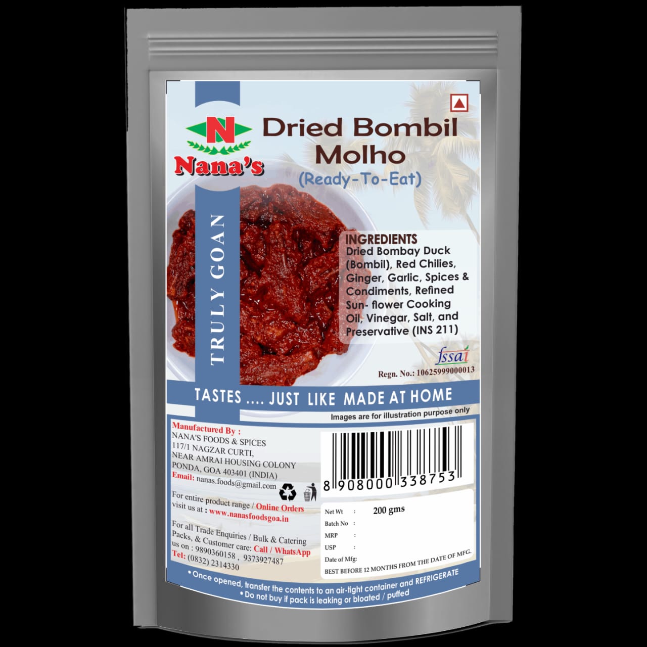 GNVP-DBM-200GExperience the rich and savory taste of our Dried Bombil Molho, meticulously prepared to tantalize your taste buds. Crafted with the finest dried bombil fish and a blend of flavorful spices, each jar offers a burst of coastal goodness. Whether enjoyed as a zesty accompaniment to your favorite rice dishes or as a spicy topping for crunchy toast, our molho adds a delightful twist to any meal. Handcrafted with care and tradition, it captures the essence of authentic coastal cuisine. Made with natural ingredients and expert craftsmanship, it's a culinary indulgence you'll savor with every bite. Dive into the flavor sensation of our Dried Bombil Molho today!