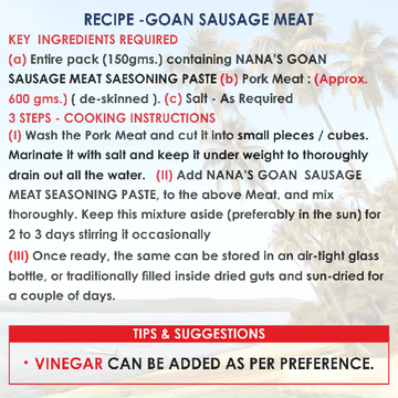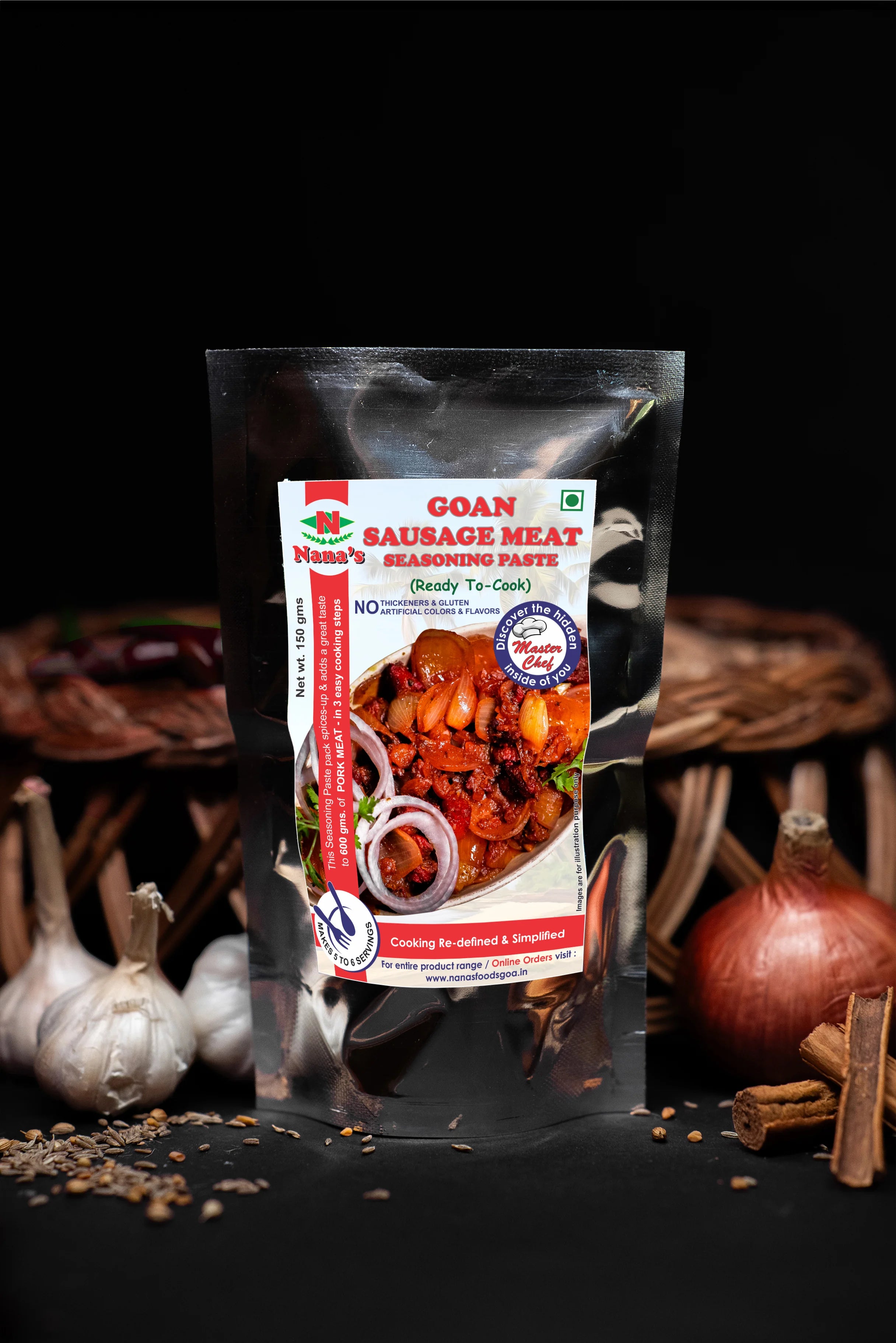 GS-GSMSP-150GIndulge in the rich and robust flavors of our Goan Sausage Meat Seasoning Paste, meticulously crafted to bring the essence of traditional Goan cuisine to your kitchen. Made with a unique blend of aromatic spices, garlic, and tangy vinegar, this paste captures the authentic taste of Goan sausage. Perfect for marinating meats, enhancing stews, or adding a spicy kick to your favorite dishes, our seasoning paste is versatile and bursting with flavor. Handcrafted with care and tradition, it transforms any meal into a culinary masterpiece. Discover the bold and savory taste of our Goan Sausage Seasoning Paste today!